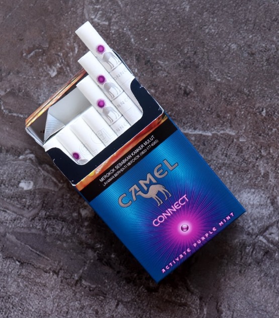 - Appearance: Purple and mint packaging with camel logo, capsule indicator in purple.