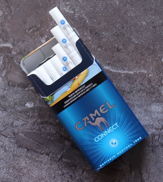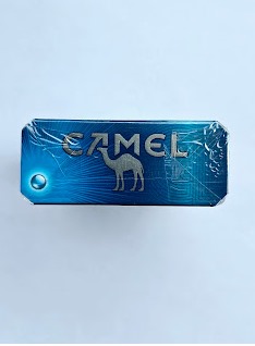 - Appearance: Blue and silver gradient pack with camel logo, embossed patterns, and a menthol capsule indicator in blue.